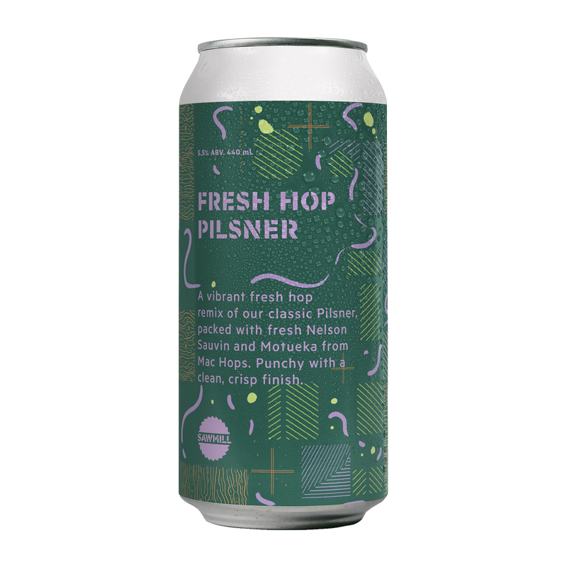 A vibrant fresh hop remix of Sawmill's classic Pilsner, packed with fresh Nelson Sauvin and Motueka from Mac Hops. Punchy and a clean, crisp finish.